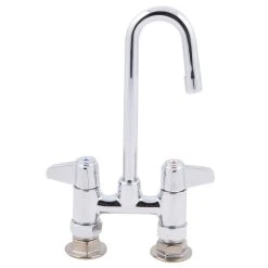 Install a convenient and useful water fixture in your business with the Equip by T&S 5F-4DLS03 11 7/8″ deck mount swivel gooseneck faucet! This faucet features 4″ adjustable centers with 1/2″ NPT female connections for fast and easy installation. Its 11 7/8″ gooseneck provides excellent water flow, and the ceramic cartridges provide long-lasting durability and use.