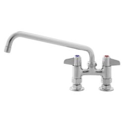 This Equip by T&S 5F-4DLX14 deck mounted faucet is the perfect solution when you need a reliable water fixture in your facility. It boasts a set of 4″ adjustable centers and a 14 1/8″ swing spout, while the included 5.2 GPM laminar flow device regulates the water flow without adding air to the water. This reduces contamination of the water and makes this faucet ideal for healthcare applications. For easy installation, the faucet includes 2″ flanges with 1/2″ NPT female inlets, as well as a supply nipple kit. Additionally, this faucet is engineered for maximum durability and uses Cerama cartridges to adjust the temperature and flow rate. These cartridges contain ceramic discs that form a long-lasting water tight seal. When the lever handles of this faucet are turned, the discs spin to allow water to pass through. T&S cartridges are designed with efficiency and convenience in mind, allowing you to swap out one piece in the event of a leak, instead of replacing multiple moving parts. T&S has been providing innovative plumbing solutions to commercial applications for all of your most pressing needs for more than 70 years! Whether a fixture is needed for handwashing stations, potwashing stations, laboratories, glass fillers, or grooming operations, T&S has the reliable products you need for consistent performance that will withstand the rigors of everyday commercial use. Their catalog features everything from faucets to sinks, dipper wells, and virtually any gas or water connection you might need. For unrivaled selection and quality, check out T&S for all of your plumbing needs!
