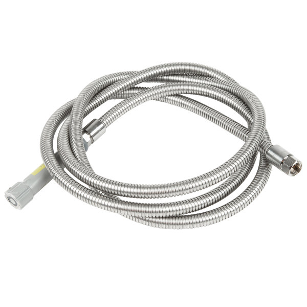 Keep your pre-rinse faucet working properly with the T&S B-0120-H 120″ stainless steel flex hose! This hose features a stainless steel body and polyurethane liner for long-lasting durability, and its gray handle easily attaches to your spray valve of choice. Overall Dimensions: Overall Length: 120″