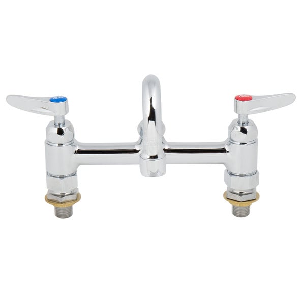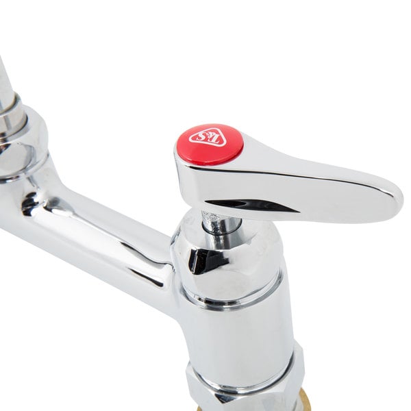 This T&S B-0220-61X-CCCR deck mounted faucet is the perfect solution when you need a reliable water fixture in your facility. It boasts 8″ adjustable centers while its 8″ swing spout and stream regulator outlet deliver gentle water flow that’s ideal for multiple applications. Additionally, this faucet is engineered for maximum durability and uses Cerama cartridges to adjust the temperature and flow rate. These cartridges contain ceramic discs that form a long-lasting water tight seal. When the lever handles of this faucet are turned, the discs spin to allow water to pass through. T&S cartridges are designed with efficiency and convenience in mind, allowing you to swap out one piece in the event of a leak, instead of replacing multiple moving parts.