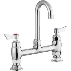 This T&S B-0221 deck mounted faucet is the perfect solution when you need a reliable water fixture in your facility. It boasts a set of 8″ adjustable centers and a 12″ swing nozzle, while the included 18.39 GPM stream regulator outlet ensures a strong, steady water flow that’s ideal for filling your sinks or pots. For easy installation, the faucet includes 2″ flanges with 1/2″ NPT female inlets. Additionally, this faucet is engineered for maximum durability and uses Eterna compression cartridges to control the water flow. These cartridges provide excellent longevity thanks to a solid brass spindle and body. When the lever handles of this faucet are turned, the spindle lifts to allow water to pass through. T&S cartridges are designed with efficiency and convenience in mind, allowing you to swap out one piece in the event of a leak, instead of replacing multiple moving parts. T&S has been providing innovative plumbing solutions to commercial applications for all of your most pressing needs for more than 70 years! Whether a fixture is needed for handwashing stations, potwashing stations, laboratories, glass fillers, or grooming operations, T&S has the reliable products you need for consistent performance that will withstand the rigors of everyday commercial use. Their catalog features everything from faucets to sinks, dipper wells, and virtually any gas or water connection you might need. For unrivaled selection and quality, check out T&S for all of your plumbing needs!