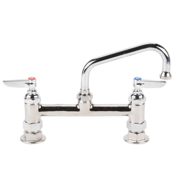 This T&S B-0222 deck mounted faucet is the perfect solution when you need a reliable water fixture in your facility. It boasts a set of 8″ adjustable centers and a 6″ swing nozzle, while the included 23.09 GPM stream regulator outlet ensures a strong, steady water flow that’s ideal for filling your sinks or pots. For easy installation, the faucet includes 1/2″ NPT female inlets with 2″ flanges. Additionally, this faucet is engineered for maximum durability and uses Eterna compression cartridges to control the water flow. These cartridges provide excellent longevity thanks to a solid brass spindle and body. When the lever handles of this faucet are turned, the spindle lifts to allow water to pass through. T&S cartridges are designed with efficiency and convenience in mind, allowing you to swap out one piece in the event of a leak, instead of replacing multiple moving parts. T&S has been providing innovative plumbing solutions to commercial applications for all of your most pressing needs for more than 70 years! Whether a fixture is needed for handwashing stations, potwashing stations, laboratories, glass fillers, or grooming operations, T&S has the reliable products you need for consistent performance that will withstand the rigors of everyday commercial use. Their catalog features everything from faucets to sinks, dipper wells, and virtually any gas or water connection you might need. For unrivaled selection and quality, check out T&S for all of your plumbing needs!