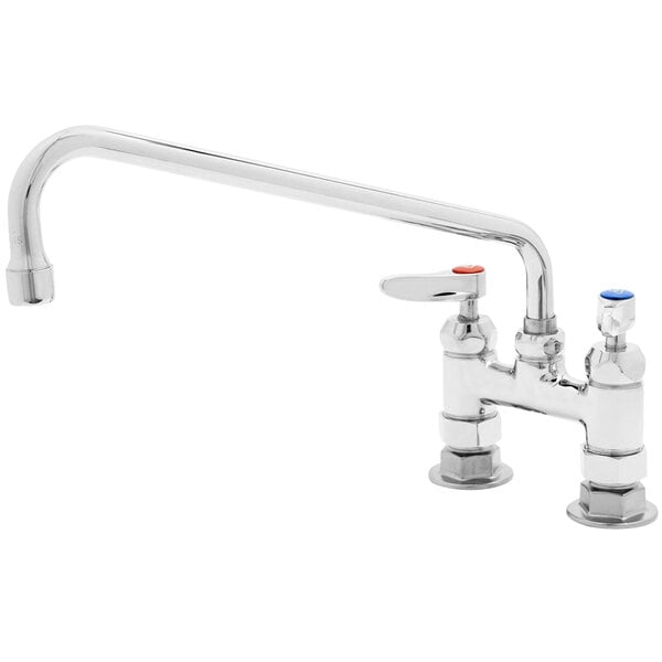 This T&S B-0225-CR-K-F10 deck mounted faucet is the perfect solution when you need a reliable water fixture in your facility. It boasts a deck that adjusts from 3 3/4″ to 4 1/4″ for extra versatility in installation while its 12″ swing nozzle and 1.0 GPM aerator deliver excellent water flow in any application. Additionally, this faucet is engineered for maximum durability and features a polished chrome plated body. A set of lever handles controls the flow of water.