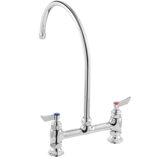 This Waterloo deck-mounted faucet is the perfect solution when you need a dependable water fixture in your facility! Waterloo faucets provide the industry-leading quality you expect. With heavy chrome-plated brass faucet bodies, ceramic cartridges engineered for durability, and certifications from a wide range of national and local regulatory agencies, you can install this model with confidence. And to give you total peace of mind, it comes with a 3-year replacement warranty. This faucet features a 12″ long swivel gooseneck spout that provides a sleek look with plenty of clearance, while a 2 GPM aerator provides a consistent flow rate and minimal splashing. It boasts a set of 8″ adjustable centers, while the deck-mounted design is easy to install with 1/2″ NPT inlets. This faucet uses ceramic cartridges, which provide a much lower fail rate than the compression cartridges widely used in the industry. In this design, 2 ceramic discs fit together to create a watertight seal when closed. This removes the need for a rubber seat washer, which is one of the most frequently replaced parts on a faucet. The sturdy lever handle design makes it easy to turn the water flow off and on. Overall Dimensions: Spout Length: 12″ Faucet Height: 16 9/16″